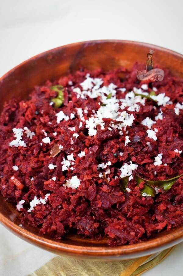 Prepared with crushed coconut and grated beetroot, Beetroot Thoran…